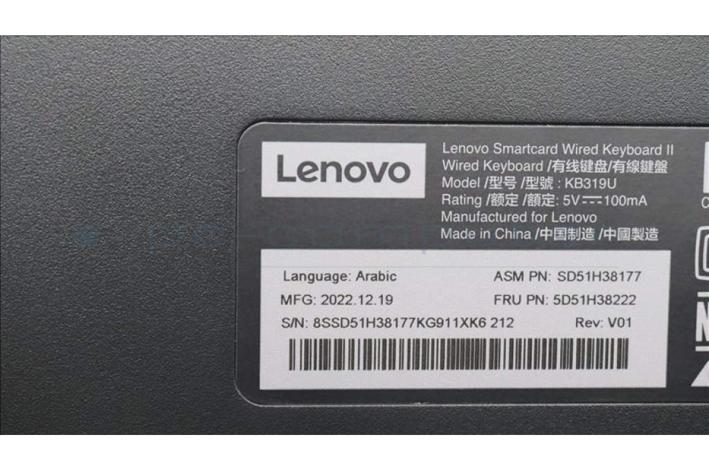 Lenovo 5D51H38222 Lenovo Smartcard Wired Keyboard,Araic
