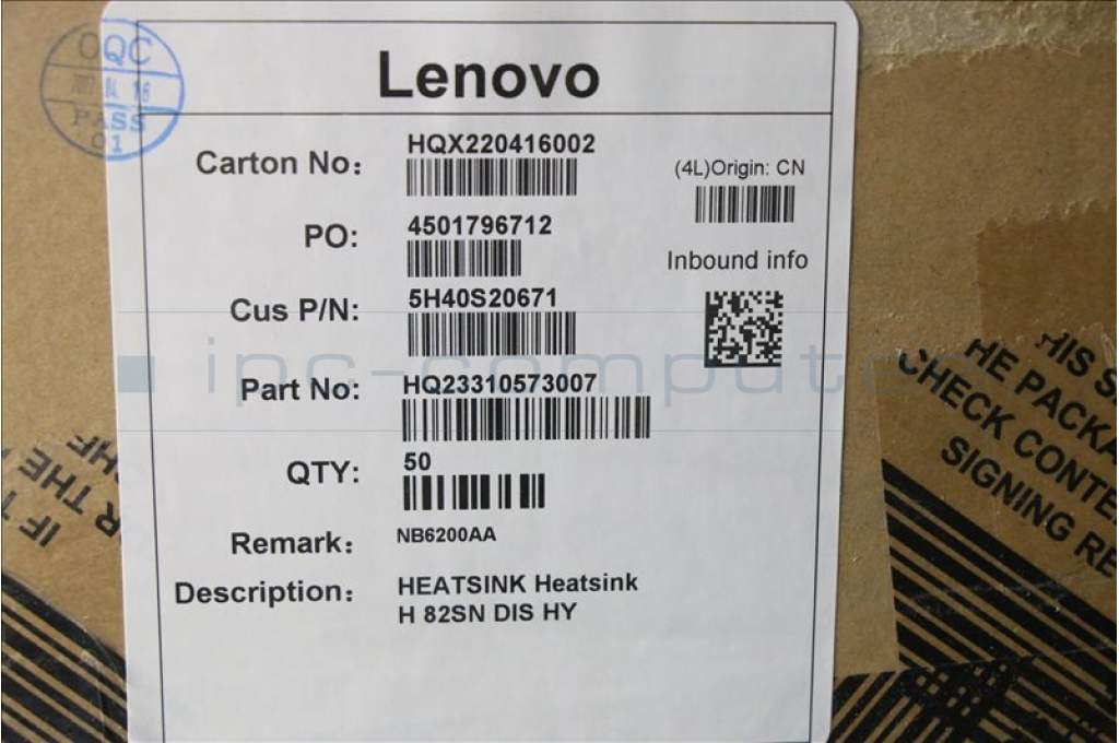Lenovo 5H40S20671 Heatsink H 82SN DIS HY