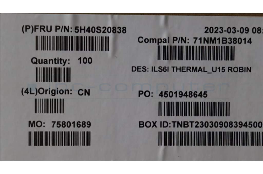 Lenovo 5H40S20838 Heatsink C 82XF U15 ROBIN