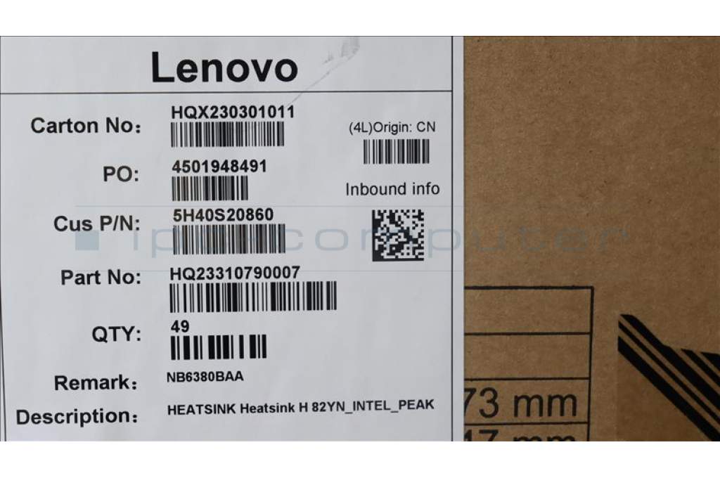 Lenovo 5H40S20860 Heatsink H 82YN_INTEL_PEAK