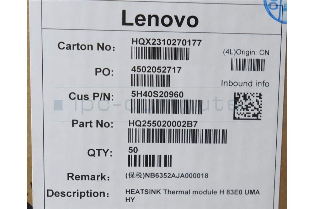 Lenovo 5H40S20960 Thermal module H 83E0 UMA HY