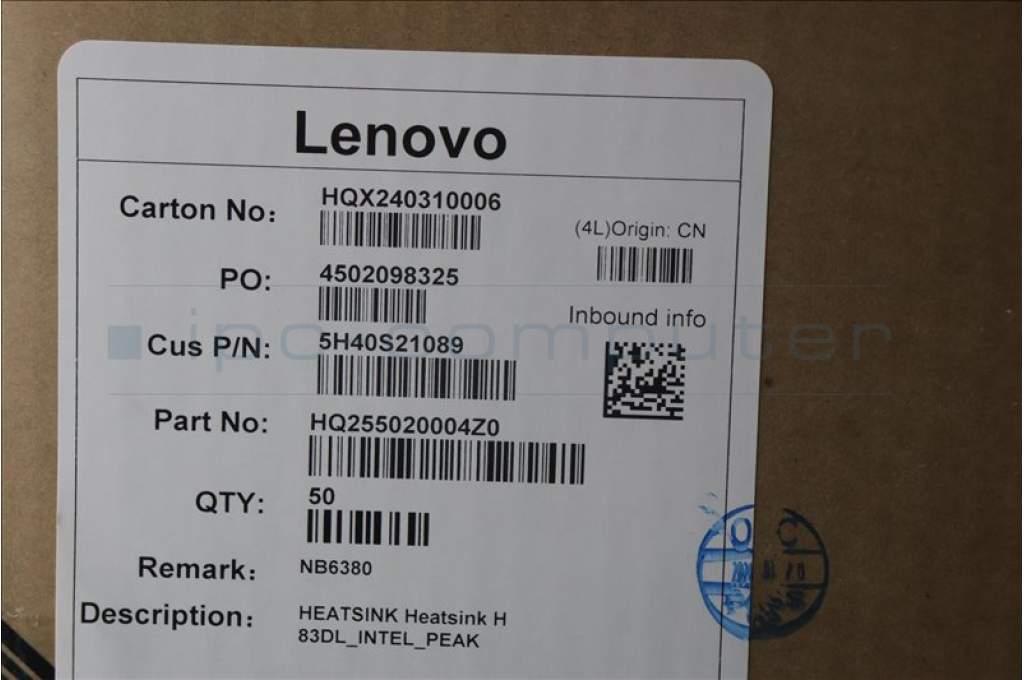 Lenovo 5H40S21089 Heatsink H 83DL_INTEL_PEAK