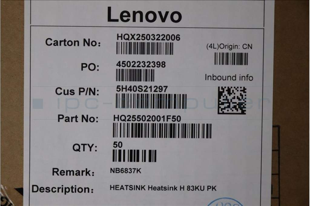 Lenovo 5H40S21297 Heatsink H 83KU PK