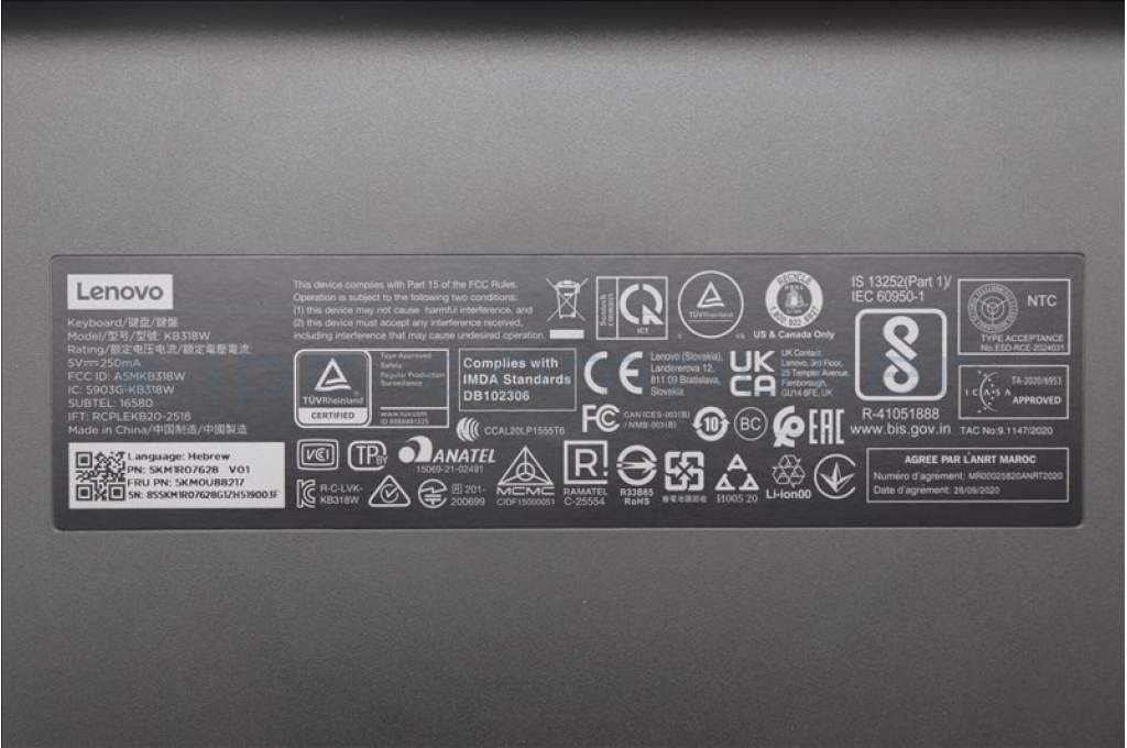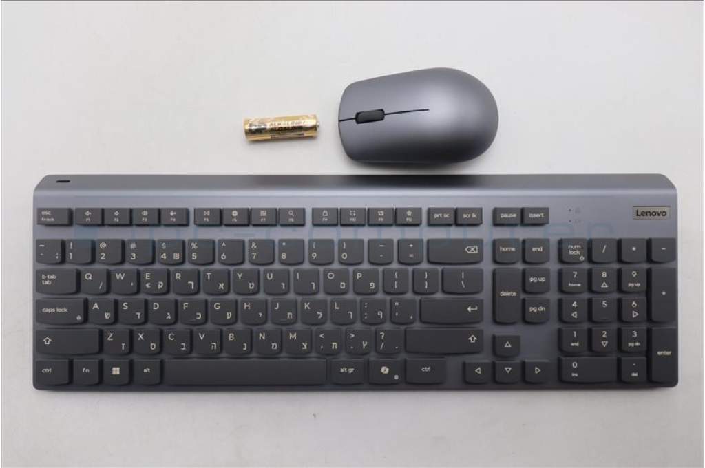 Lenovo 5KM0U88217 Keyboard_Mouse, Wireless, Hebrew, Luna Grey