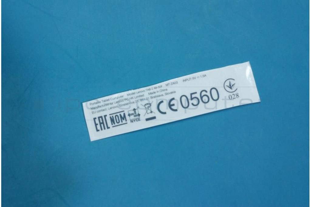 Lenovo 5L18C02096 A8-50F Rating label UA/RU/MX&*70152673CS