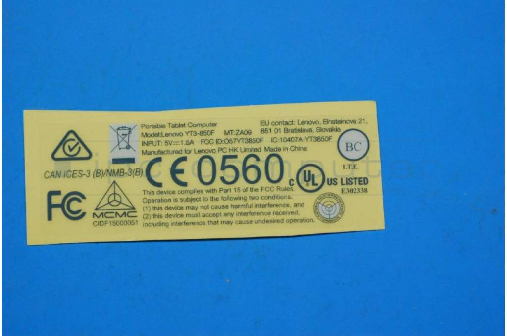 Lenovo 5L18C02848 YT3-850 Rating label&*70152399 CS