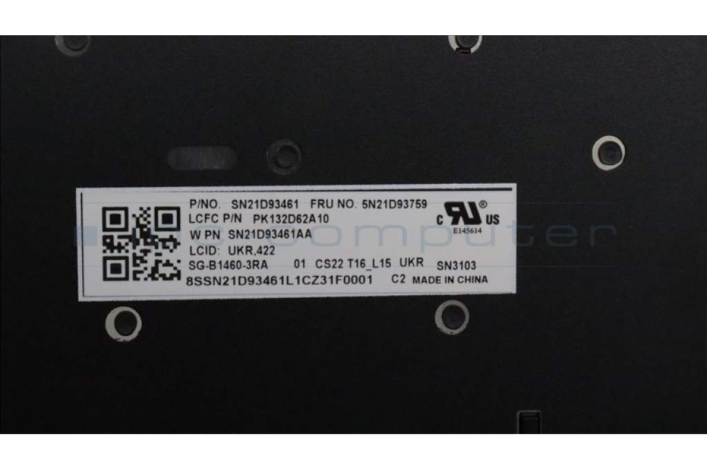 Lenovo 5N21D93759 Keyboard Internal, Ukraine, Black, Non-Backlight, w/Number, US