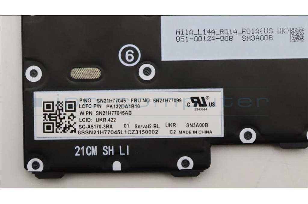 Lenovo 5N21H77099 Keyboard Internal, Ukraine, Black, Backlight, US