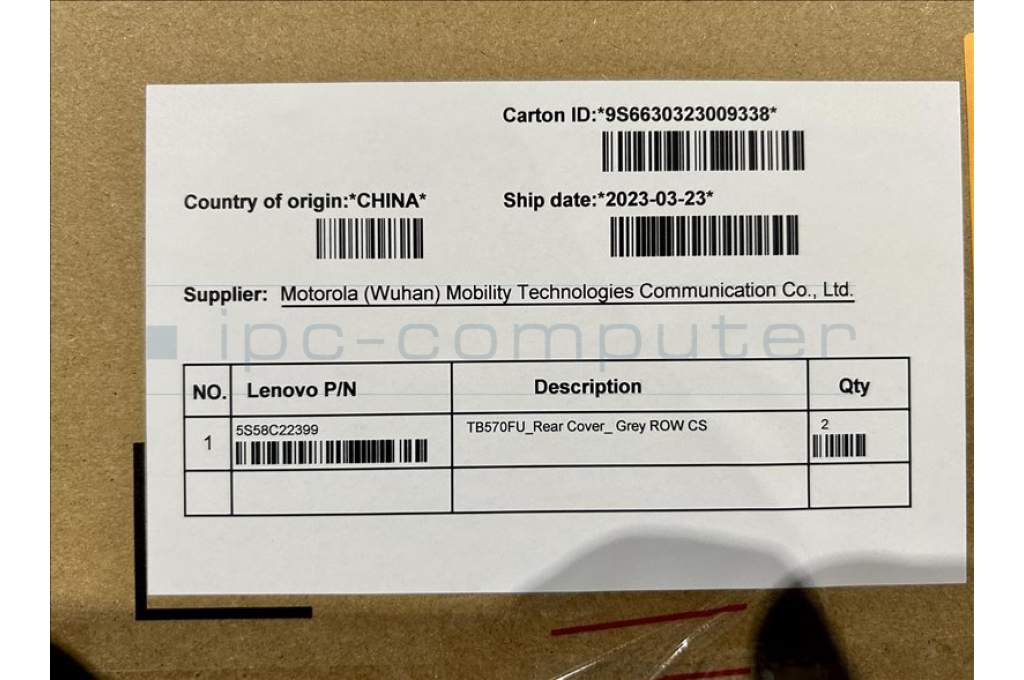 Lenovo 5S58C22399 TB570FU_Rear Cover_ Grey ROW CS