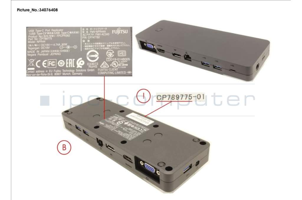 Fujitsu CP789775-XX PORT REPLICATOR TACT 2 (TYPE-C)