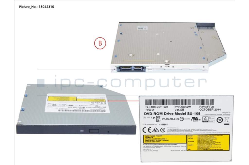 Opt. Laufwerk: DVD_ROM DVD ROM Ultraslim für RX100S8, RX1330M1, RX1330M2, RX2530M1, RX2530M2, RX2540M1, RX2540M2 S26361-F3718-L2