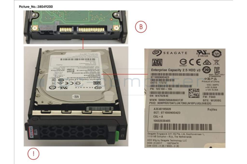 SSD/HDD: 1 TB Chassis: 2,5'' Kein loser Verkauf, Abgabe nur mit Server-Systemen HD SATA 6G 1TB 7.2K 512n HOT PL 2.5'BC für TX1320M3, TX1330M3, RX1330M3 RX2530M2, RX2530M4 S26361-F3956-L100