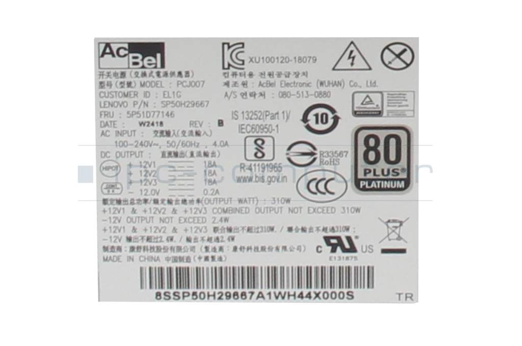 Desktop-PC power supply 310 Watt Small-Form-Faktor (SFF) original for Lenovo ThinkStation P340 (30DM)