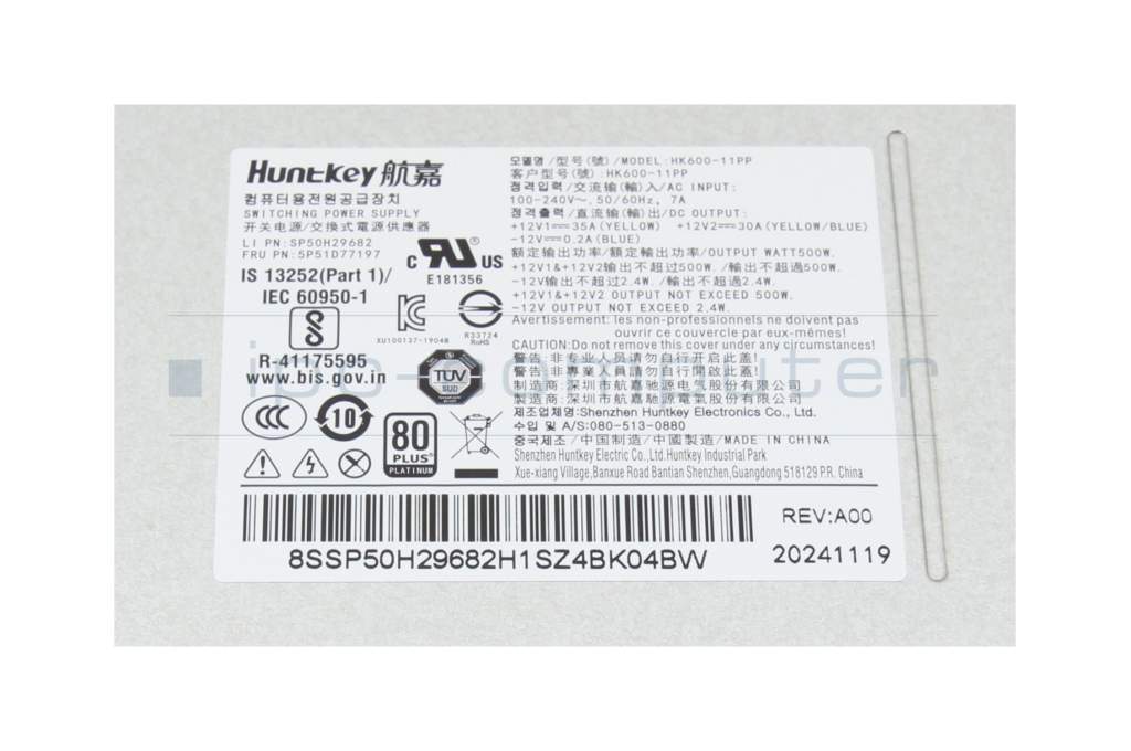 Desktop-PC power supply 500 Watt original for Lenovo ThinkStation P350 Workstation (30E4)