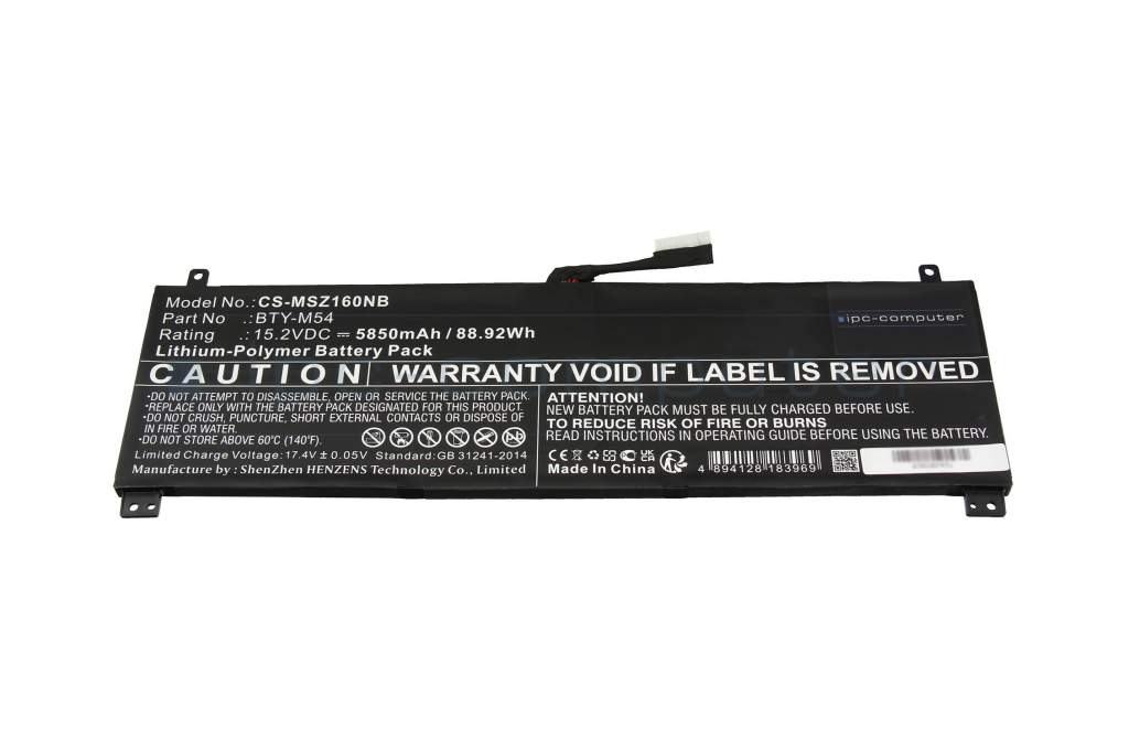 Please note: The battery with the type designation BTY-M54 is available in different versions with different cable lengths. Please check before purchasing to ensure this is the correct battery for your laptop.