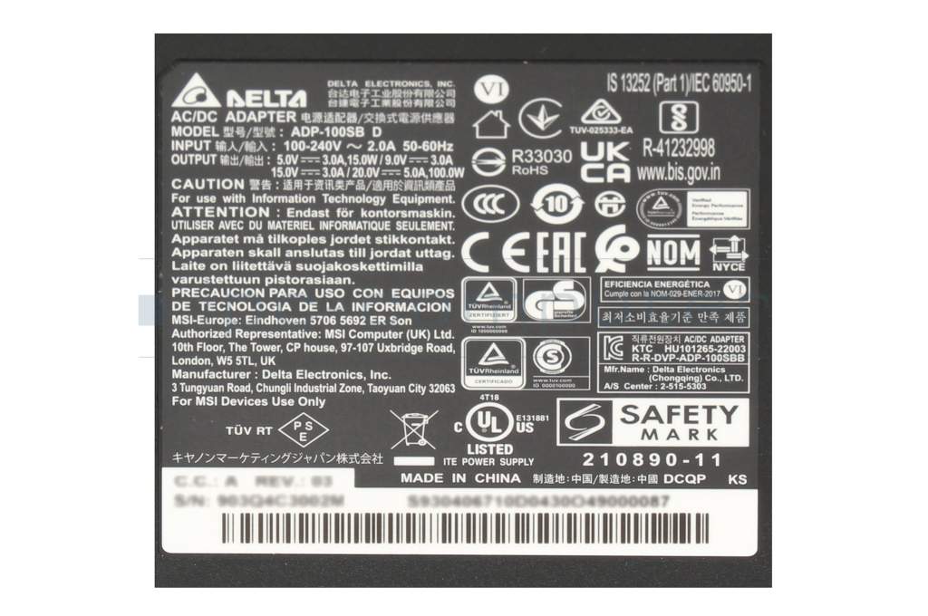 MSI Summit A16 AI+ A3HMTG original USB-C AC-adapter 100.0 Watt square