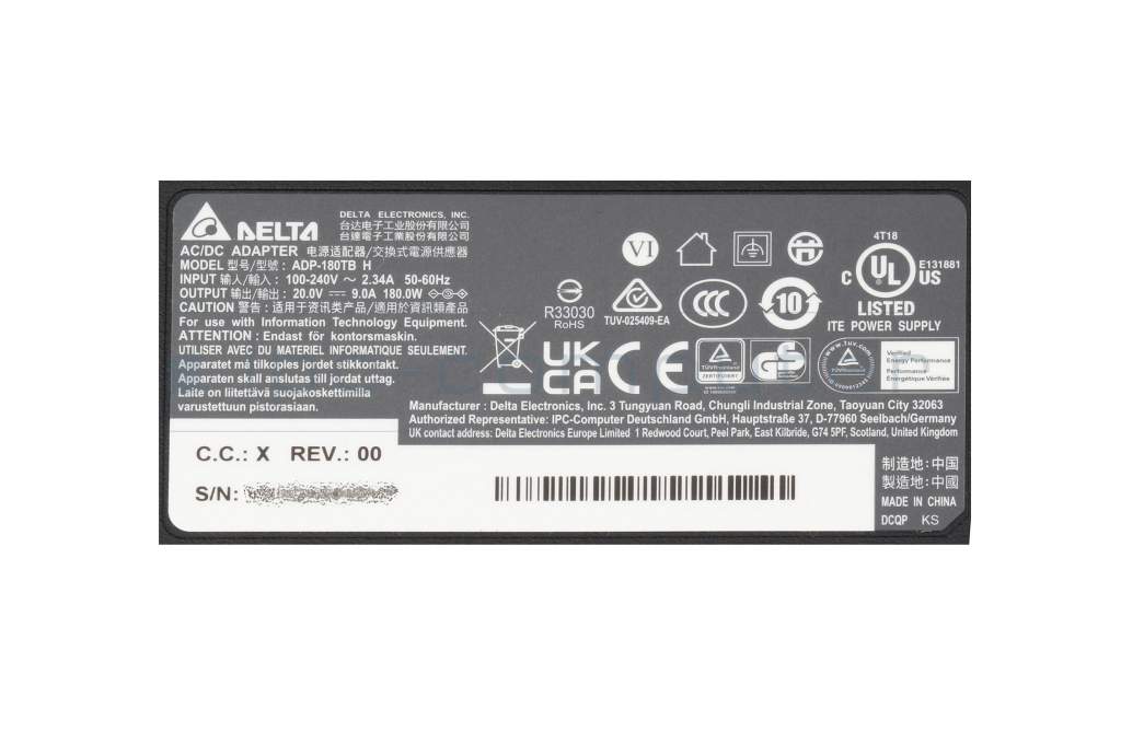 MSI Sword 17HX B14VEKG/B14VFKG/B14VGKG AC-adapter 180.0 Watt from Delta Electronics