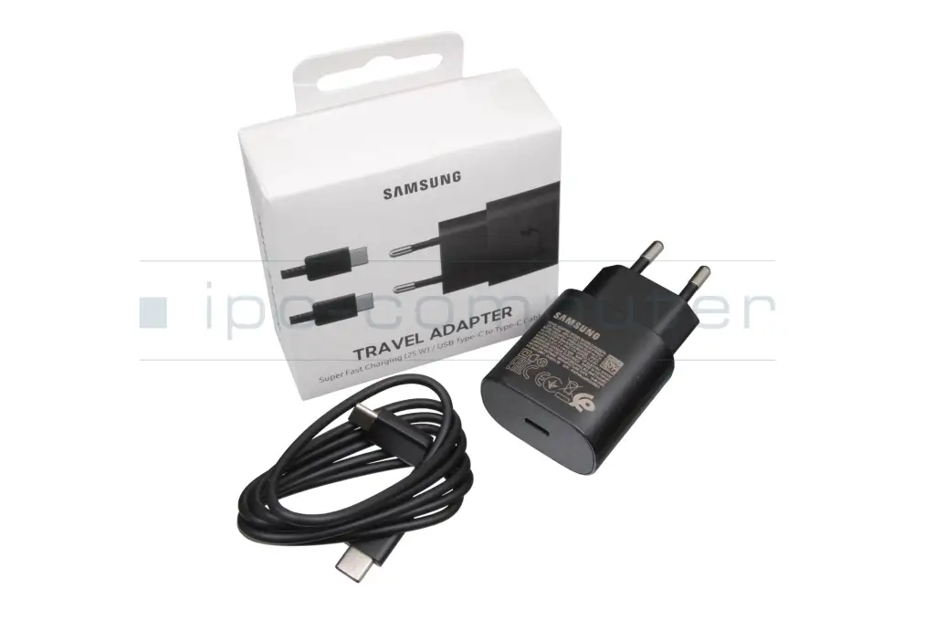 Fast charging function compatible with Galaxy S10 5G, A80, A70 and future devices. The charging adapter can also be used for devices without fast charging technology. The charging adapter can achieve a speed of up to 25 W for devices that support standard PD 3.0. For other devices, it achieves the standard speed. USB Type-C to USB Type-C cable included.