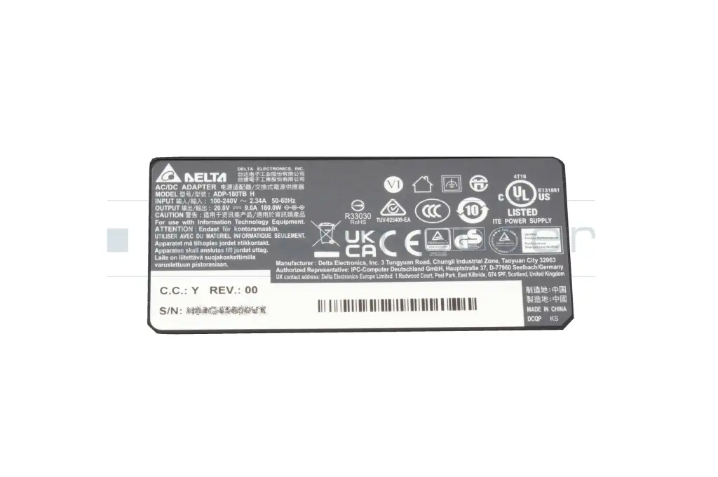 Schenker XMG PRO 15 Audio (E21) AC-adapter 180.0 Watt slim from Delta Electronics (5.5/2.5)