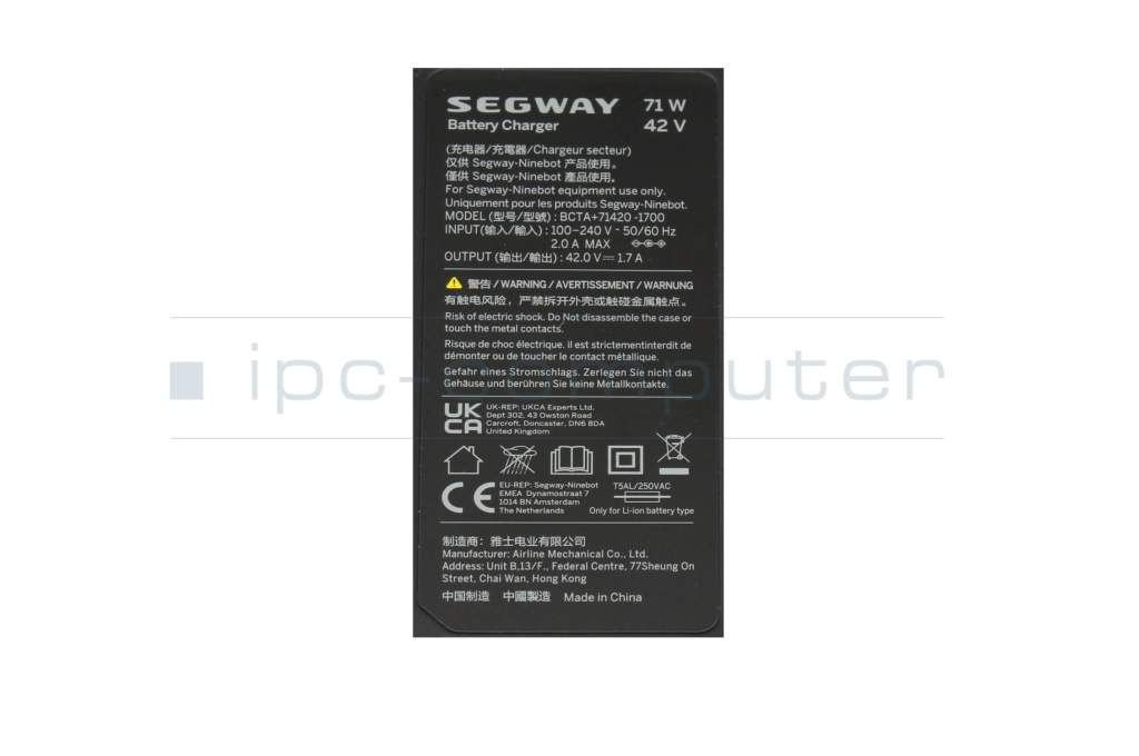 Segway Ninebot eKickScooter F2 D Pro original AC-adapter 71.0 Watt EU Wallplug rounded