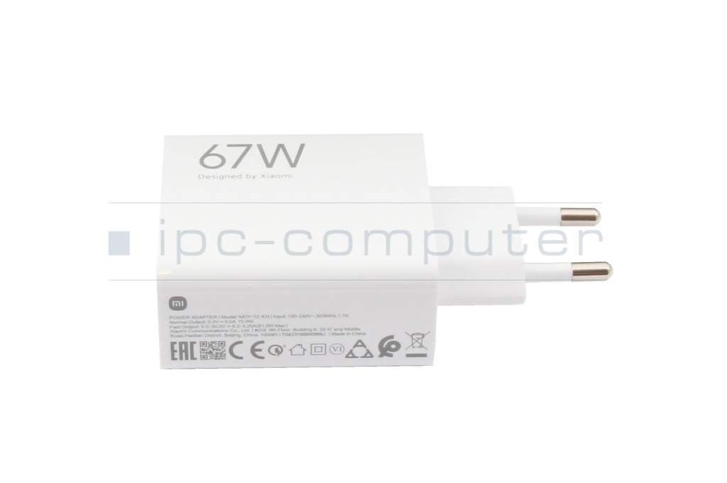 Xiaomi Redmi 10X 5G original USB-C AC-adapter 67.0 Watt EU Wallplug white (Charging Combo Type-A)